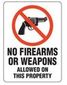 - Wording reads: "NO FIREARMS OR WEAPONS ALLOWED ON THIS PROPERTY (WITH GRAPHIC)".