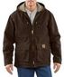 12-ounce, 100% cotton sandstone duck • Sherpa lining in body, quilted-nylon lining in sleeves • Attached three-piece hood with draw- cord closure • Two chest pockets with vertical zip closures • Two lower pockets with hook-and-loop flap closures and separate side entry hand-warmer pockets • Two inside pockets • Drop tail • Internal waist draw-cord • Internal rib-knit storm cuffs • Triple-stitched main seams • Split back with pleated bi-swing • Back Length: Large Regular: 32 inches; Large Tall: 34 inches.