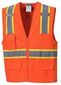 2'' silver reflective tape with contrast material Cooling mesh back, lightweight solid polyester front Pockets: 1 cell phone, 1 two-tiered chest with pen division, 2 lower hip, 2 internal lower patch 2 mic tabs Zipper closure.