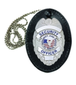 LEATHER CLIP-ON BADGE CASE, METAL CLIP & CHAIN INCLUDED