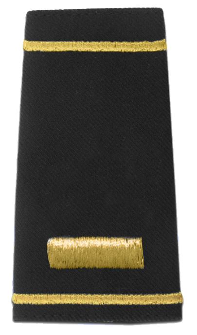 Fits over shirt/coat shoulder tab. Layout A has thin stripe at top & thick stripe at bottom - with rank insignia centered between stripes. Insignia is about one inch, varies by pattern. Rank/stripes embroidered with Permagold or Permasilver mylar on black or navy blue ground fabric.