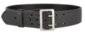 - Black leather with a nickel buckle