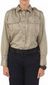 This shirt is made with a polyester cotton blend for a professional appearance and comfort that incorporates Teflon for stain resistance. The body features sewn-in military creases on the front and back. The long sleeve shirt incorporates collar stays along the front edge of collar and a Taffeta lined collar.