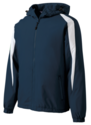 Versatile and comfortable, this jacket has athletic colorblocking and includes a hood to shield you from unexpected wind and rain.