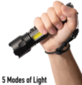 Rothco's 2000 Lumen LED Tactical Task Light provides an ultra-bright field of illumination and features an LED side lamp that enables handsfree use. The rechargeable tactical flashlight is IPX4 water-resistant and features a zoom capability that enables you to adjust the beam spread as needed. The main LED light on outdoor flashlight has 5 modes: High, mid, low, flare, and SOS, while the COB LED side lamp features 4 modes: high, low, red, and red flare. The flashlight comes with an 18650 lithium-ion battery that is rechargeable via an included USB-C charger and also features a USB output for charging other devices. The flashlight features an additional adapter for powering with three AAA batteries, a paracord wrist strap, and measures 7 inches x 1 4/5 inches x 1 2/5 inches.