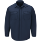 Bi-swing back. Microphone loop on shoulder > Hidden button front placket closure. Hex chest pockets and flaps with hook-and-loop closures for secure storage. Pencil stall on left chest pocket. Fabric: Flame-resistant, 6.1 oz. Kermel,79% Kermel Aramid / 20% Modacrylic / 1% Other Fiber