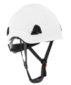 Modern lightweight 'climbing inspired' industrial hard hat; chin-strap with molded chin cup for security. High density polyethylene material (HDPE); Hard Hat is Non-Vented. 6 point ratchet suspension, fits head sizes 6-1/2 to 8. Rapid-Dial ratcheting headgear with ability to grab and adjust; slotted adapters for use with variety of face shield adapters, ear muffs and Safe 2 System. Ideal for height, scaffolding work, and general head protection. ANSI Z89.1, Type 1, Class C, G, E, and EN397 European Standards.